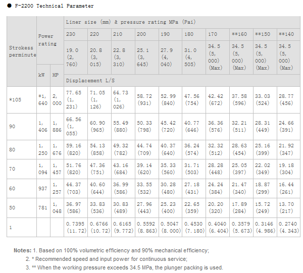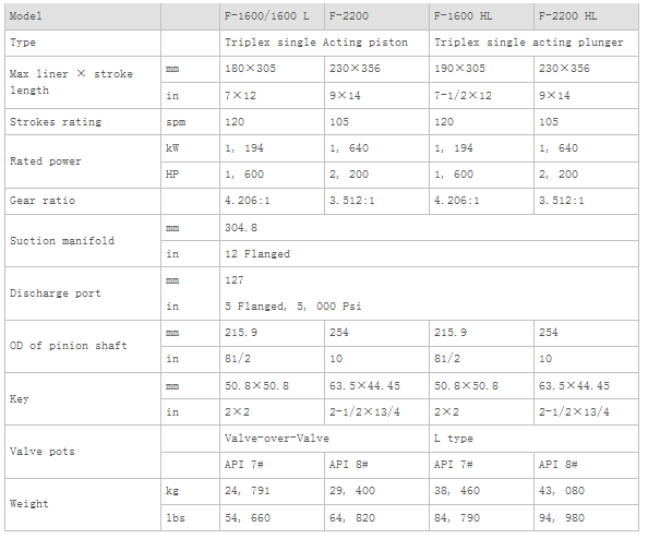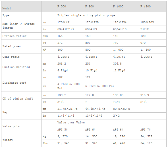 F-Series pumps are rated at long stroke length and relatively low strokes per minute, thus they improve the suction performance and increase the service life of the expendable parts on the fluid end.