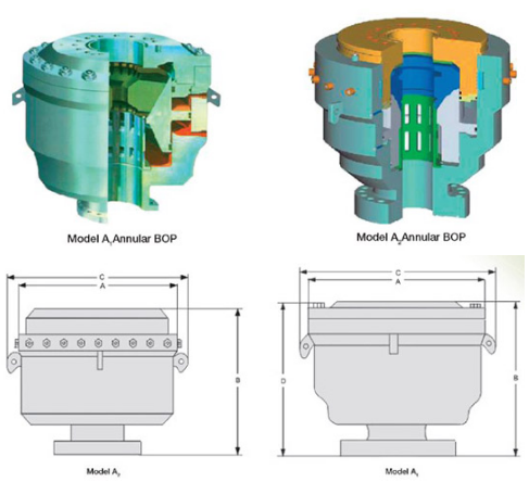 The annular BOP has three structural styles including Model A1, Model A2 and Model D.