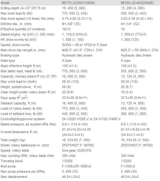 Big & Easy rigs (BE770 and BE550 are available) are new conceptual AC VFD drilling rigs, featuring special module, trailer-mounted structure and fast transportation.
