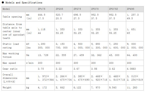 The master bushing made of steel casting meets API Spec 7A in size. The pin drive is suitable for the roller bushing of API square Kelly or hexagonal kelly and the long or short slip is used. The rotary table features full lubrication and the reliable seal.