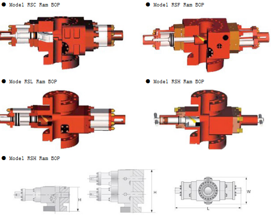 For ram BOP, 4 structure styles as RSC, RSF, RSL and RSH are available.